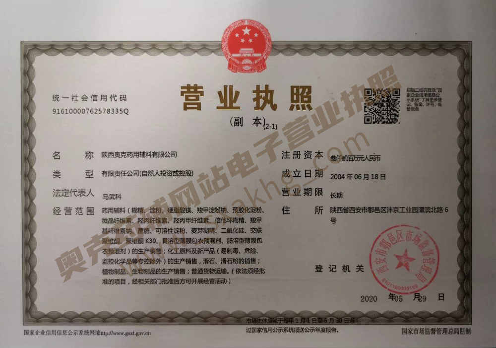 陜西奧克藥用輔料有限公司是陜西省科技企業(yè),是國(guó)內(nèi)專(zhuān)業(yè)從事藥用輔料生產(chǎn)的企業(yè),從事藥用輔料的生產(chǎn)銷(xiāo)售已有30多年,生產(chǎn)的產(chǎn)品受到用戶(hù)的廣泛好評(píng)?,F(xiàn)位于西安市鄠邑區(qū)灃京工業(yè)園區(qū),是西北地區(qū)工藝設(shè)備先進(jìn)、質(zhì)量服務(wù)好的輔料企業(yè)。